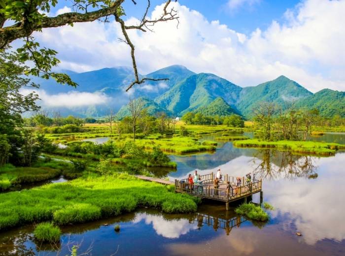 自然风光旖旎,大九湖有画一样的风景有诗一样的情调。在四号湖黄色相间的小火车,穿梭于蓝天、白云、湖水、湿地之间,主要游览景点有亚高山草原、浅水湖泊、落水孔、枯木逢春、天然野生动物园等。