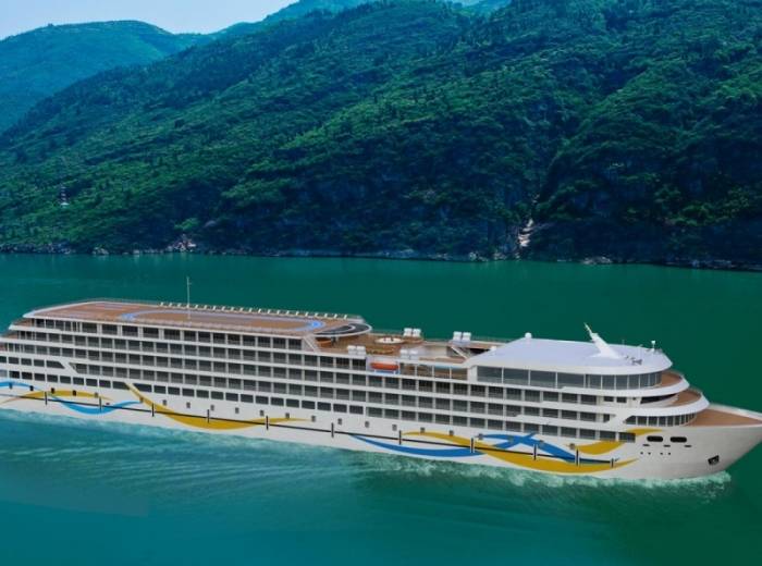 外观设计上,采用海洋邮轮弦墙由主甲板升高至上甲板,观感内敛而大气,包裹感极强;首尾折角线等比例向内收紧,中部靠前设计为下沉式露天观景区域,整个外观构起伏有致,线型流畅,在目前已有和在建的长江邮轮上,独1无2,具有很强的创新性和辨识度。采用特性的彩色涂装,使整个船型观感更具动感,充分体现新一代邮轮的时代审美诉求。