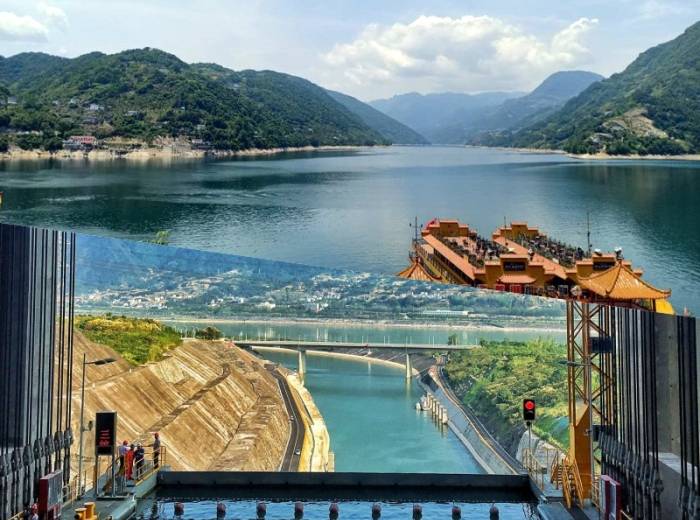14:00- 16:00:乘“长江三峡”系列豪华观光游轮,船过世界上最大的“三峡升船机”,体验下水净船乘百米“升船电梯”过三峡大坝的震撼感受,领略“高峡出平湖,当惊世界殊”的壮丽画卷。